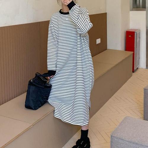 밸리걸 세이브존01 스트라이프 티배색 바스락 긴팔 롱원피스 610170
