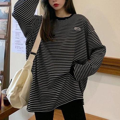 티셔츠 루즈핏 단가라 스트라이프 긴팔 맨투맨 가을