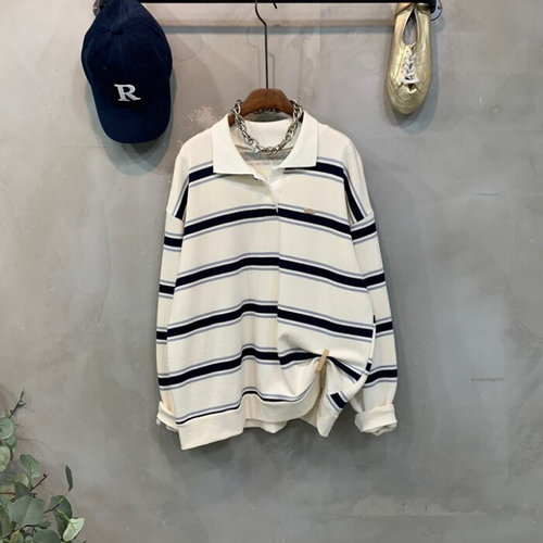 씨샵인더룸 / 고티 팬던트 스트라이프 카라넥 긴팔 맨투맨 3color