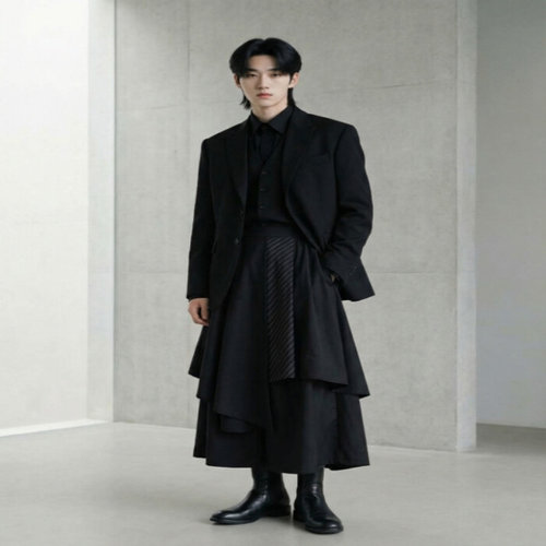 [무슈봉]어반 젠더리스 스트라이프 플레어 밴딩 와이드 스커트바지