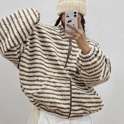 [아이우먼]줄무늬밴딩털집업자켓 GBV984M601 빅사이즈