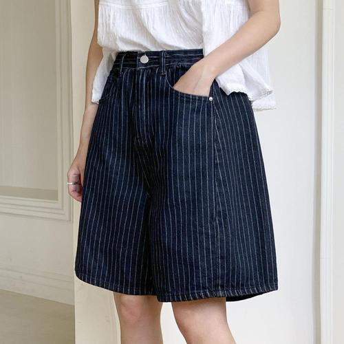 [신상오픈런]여성용 스트라이프 9부 버뮤다 와이드핏 가을용 청바지