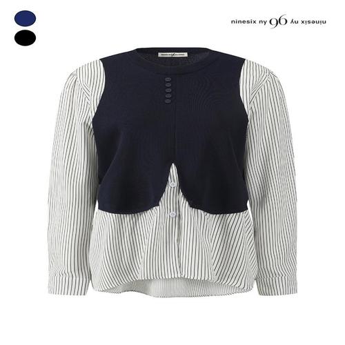 [나인식스뉴욕]스트라이프 니트 배색 노카라 블라우스 (NQ2SH005M0)