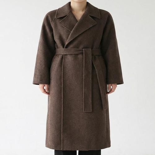 [엄지척]여성 오버핏 허리 스트랩 심플 모직 롱코트_20226573_667501