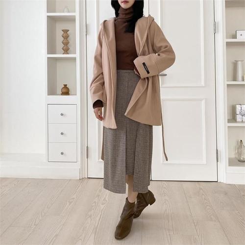 여성코트 빈티지 감성 허리 스트랩 여성 체크 반코트