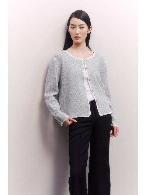 [에이치엔엠] 블랭킷 스티치 가디건 라이트 그레이 멜란지 1275133002