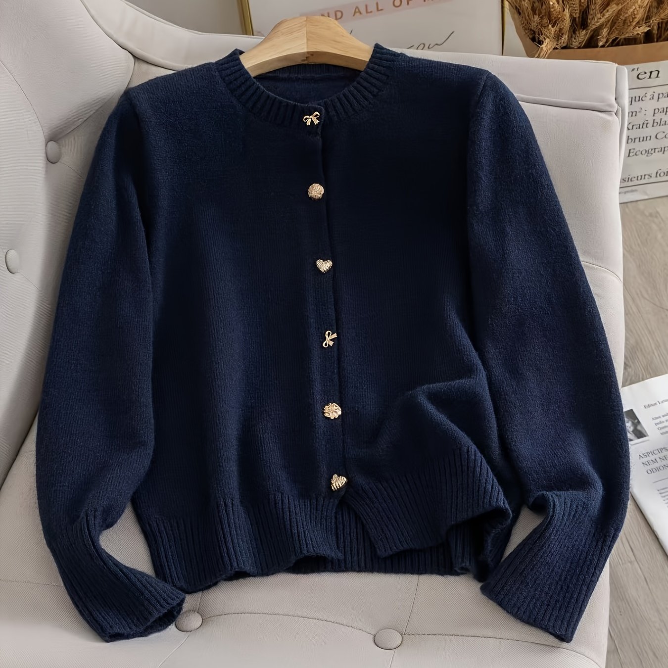 TEMU 봄/가을 스타일 라운드넥 가디건