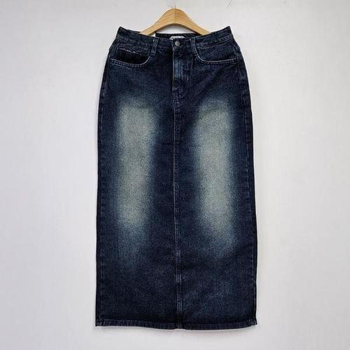 허니제이 / 2가지길이 빈블 넌스판 워싱 뒷밴딩 데님 롱 스커트/ 4컬러/ 5사이즈