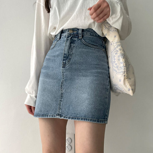 더클립 / 핀스 탄탄핏 난스판 중청 데님 미니 스커트