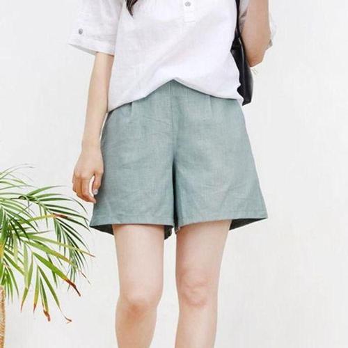 [에이치플러스몰]여름반바지 여자 린넨 뒷밴딩 A라인 반바지 슬랙스