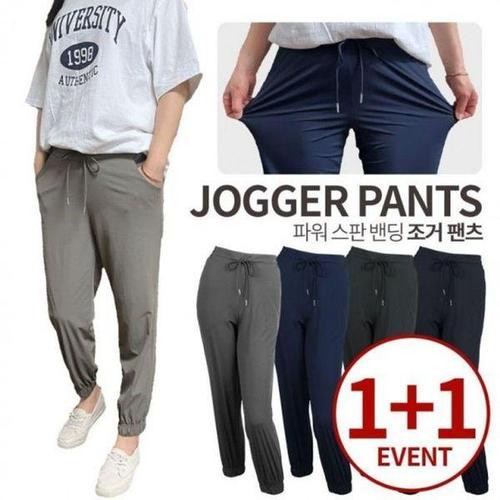 [에이치플러스몰]여성 베이직 나일론 파워 스판 올데이 밴딩 조거팬츠