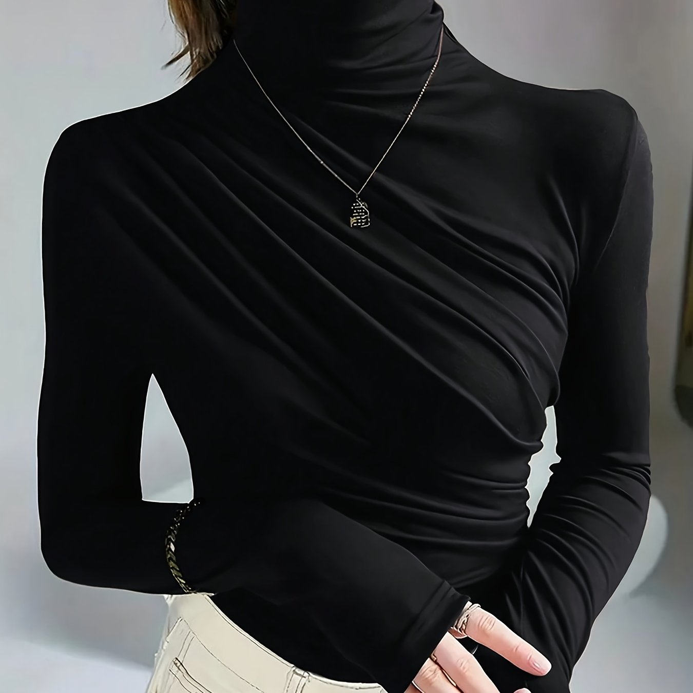 TEMU X6347 신상 가을 블랙 터틀넥 탑, 핏 좋은 디자인과 긴 소매로 레이어링에 완벽