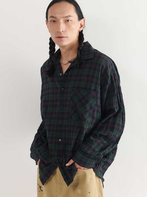 [스미스아머] 노블 오버핏 빈티지 긴팔 체크 셔츠_그린