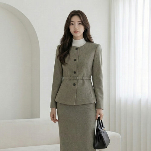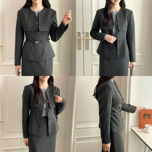 스타일라떼 / 겨울 치마정장세트 벨티드 자켓 스판 스커트 투피스 셋업수트 출근룩