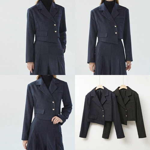 스타일라떼 / 스트라이프 언발 크롭 자켓 유니크 테일러드 스판 숏 재킷 하객룩 오피스룩