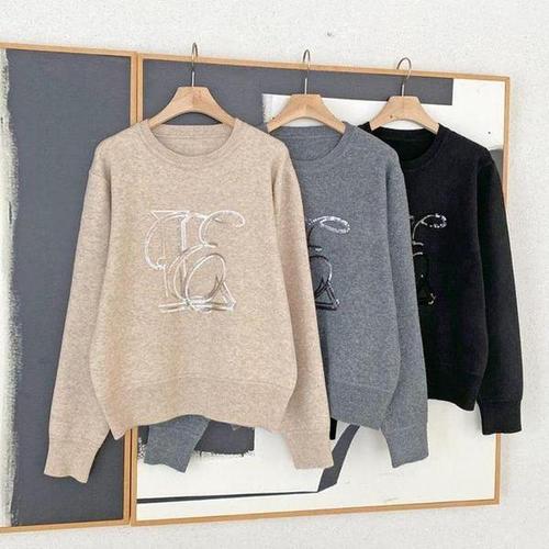 [다잇템_패션]여자 롱슬리브 필기체 미색 스팽글 U넥 니트