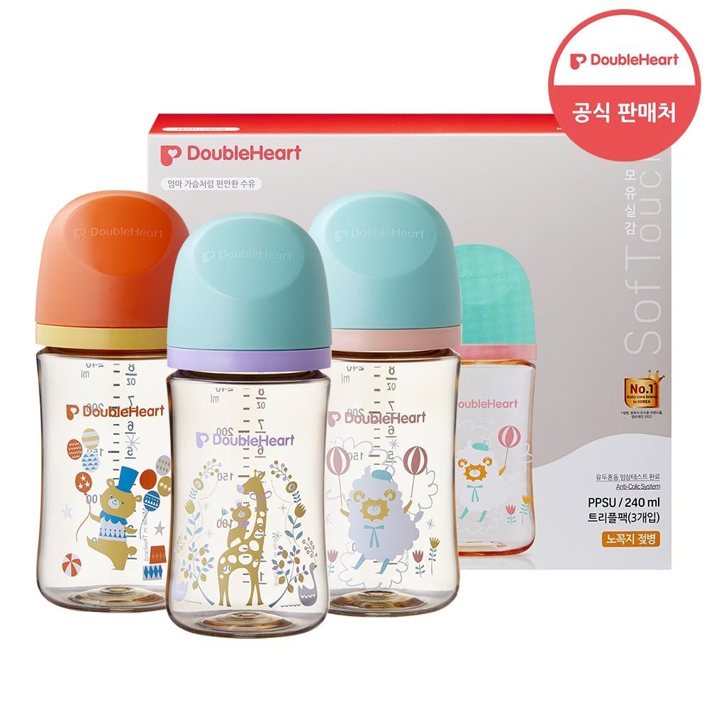 란시노 유리젖병 240ml 3P 신생아 아기(젖꼭지 M포함)