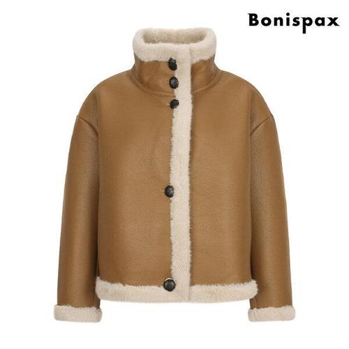 [보니스팍스][시즌오프] 베이직 카라 레더 버튼 포켓 긴팔 자켓 (XO4JK003L0)