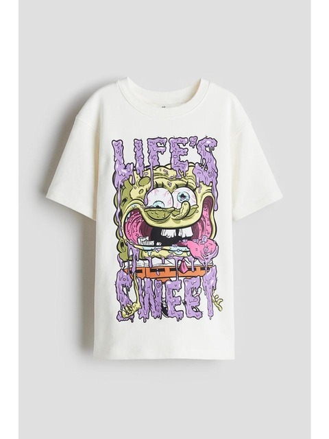 [에이치엔엠] 프린트 티셔츠 화이트/스폰지밥 1293246004