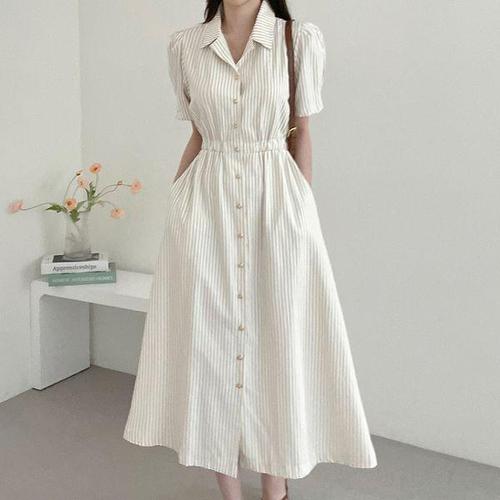 [모노무드]모노무드 캐주얼 줄무늬 스프라이트 반팔 롱 원피스