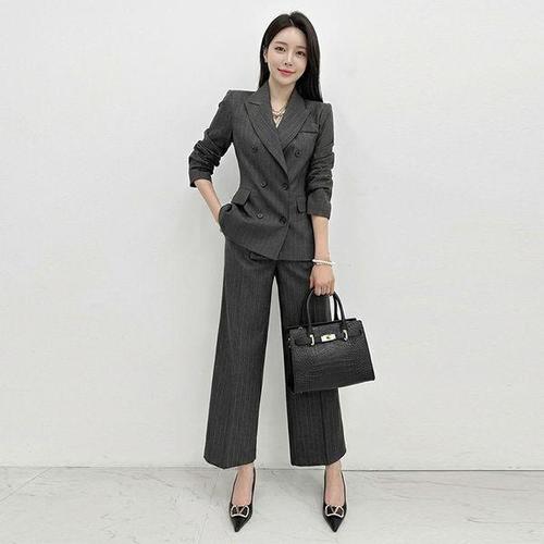 스타일라떼 / 겨울 스트라이프 바지정장세트 스판 자켓 슬랙스 투피스 셋업수트 출근룩