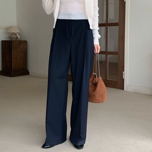 [신상오픈런]여성 하이웨스트 스트라이프 와이드핏 투버튼 맥시 슬랙스
