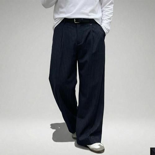 ANYOU 남성 스트라이프 와이드 팬츠 루즈 핏 팬츠 가을 팬츠