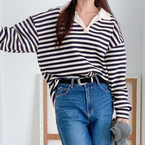 여성 루즈핏 스트라이프티 여성빅사이즈티 복고