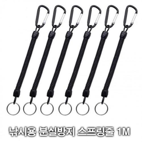 스프링 카라비너 낚시용 분실방지 줄 블랙 1M (49JBz)