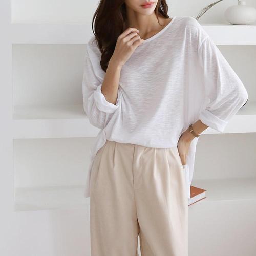 라라온 여성용 데일리 U넥 8부 슬라브 티셔츠 26TSP3703