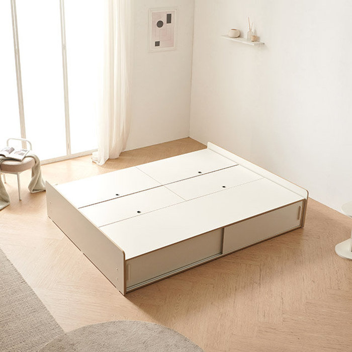 라자가구 E0 모아 슬라이딩 벙커 수납 침대 프레임 SS/Q (매트제외), 화이트