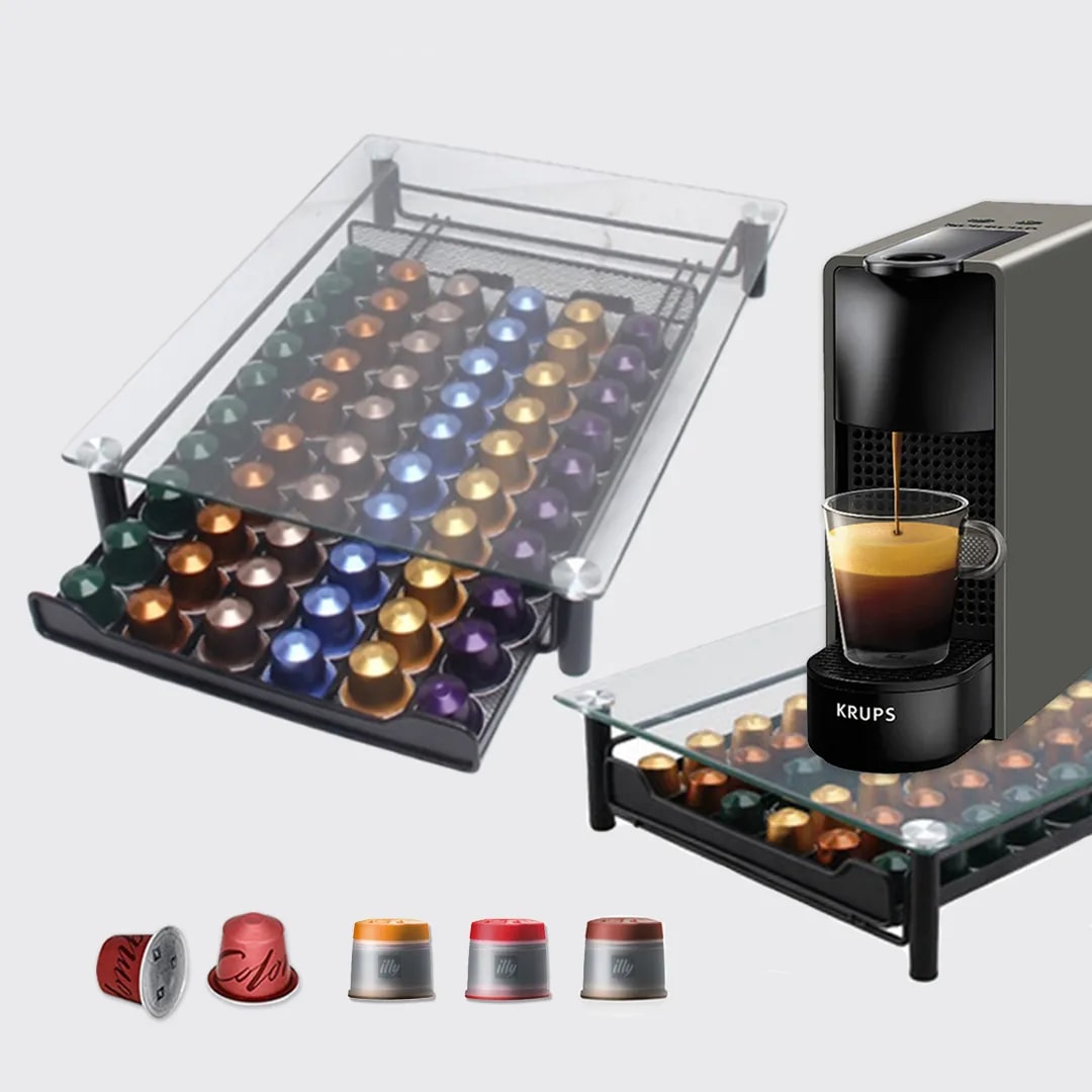 강화유리 서랍형 커피 캡슐 보관함 40구 홈카페 인테리어 카누 호환캡슐 정리함