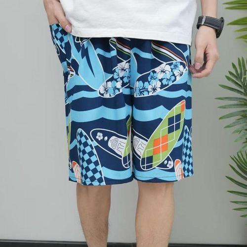 [에이치플러스몰]커플 편한 썸머 와이드 패턴 바지 슬림핏 5부