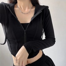 cammello 슬림핏 골지 후드 긴팔 짚업 크롭티