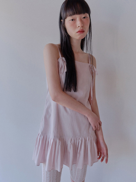 [에트몽] 슬립 플리츠 미니 드레스, 핑크