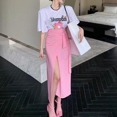 [무드수]하이웨스트 슬릿 랩 스커트 데일리 치마