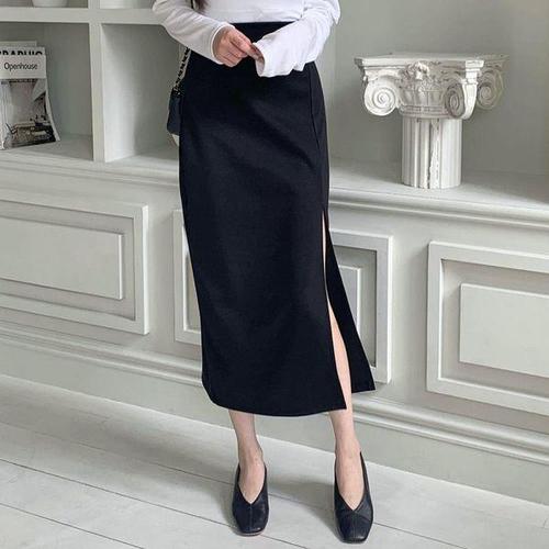 [셀러허브_여성트랜드패션]얇은 슬릿 스커트 치마 뒷밴딩 블랙 A라인 H라인 롱