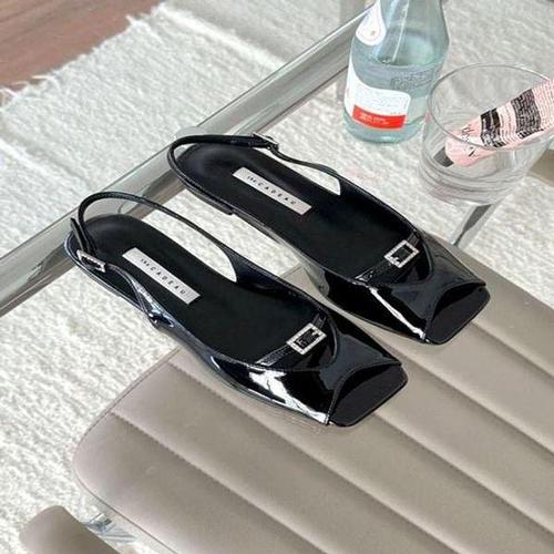 [애슬릿] 스퀘어 버클 여성 슬링백 플랫 슈즈 1cm