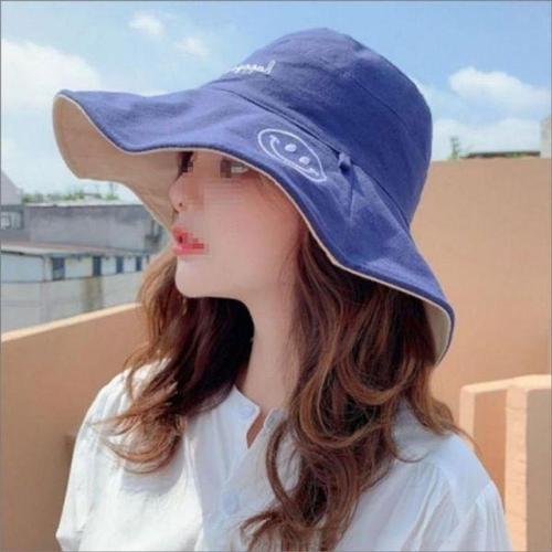 [에이치플러스몰]여성 양면 벙거지 모자 버킷햇 돌돌이 스마일 면모자 캠핑 여행 챙넓은 봄 여름 모자 왕..