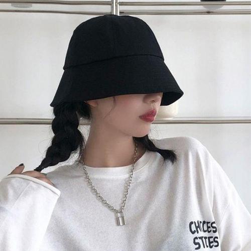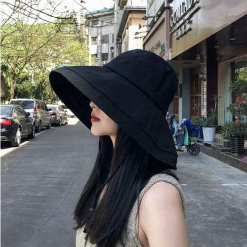 [에이치플러스몰]린넨 면 모자 버킷햇 자외선 차단 블랙