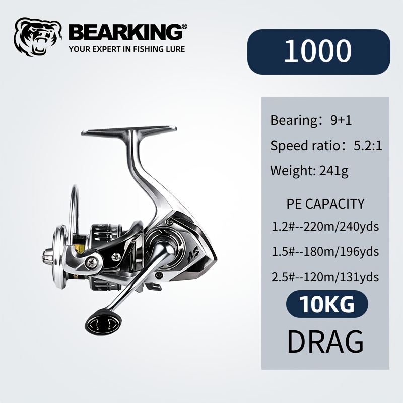 TEMU BEARKING AS 암살자 9+Bearing 스피닝 릴, 염수 방지 풀 밀폐 바디 + 녹 방지 베어링 디자인, 루어/록 피싱/보트 피싱/슬립 플로트 특수 바다 및 담수 범용 스무스 롱 캐스팅, 틈새 없음, 고강도 경량 바디