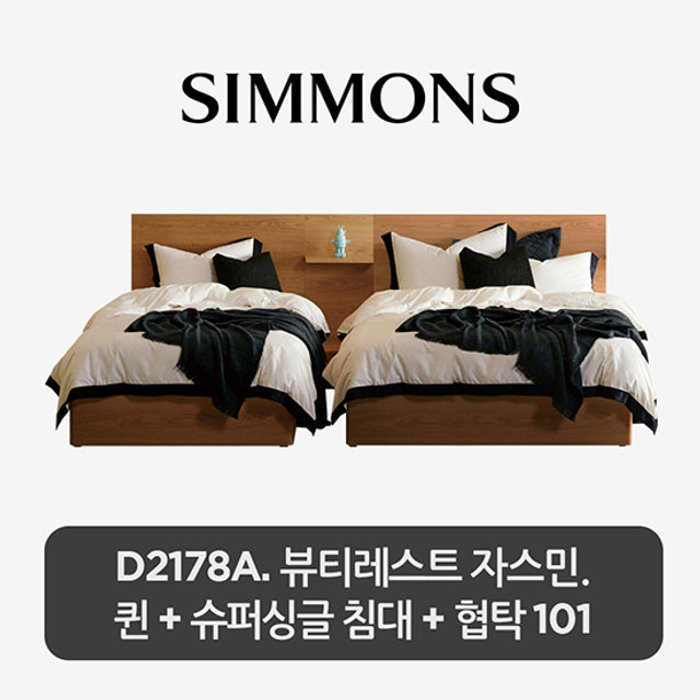 (주)시몬스 [2개묶음] D2178A. 뷰티레스트 자스민. 퀸+슈퍼싱글 침대+협탁 101