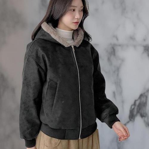 [셀러허브_여성트랜드패션]여성 퍼안감 후디집업 외투 시보리 한파용