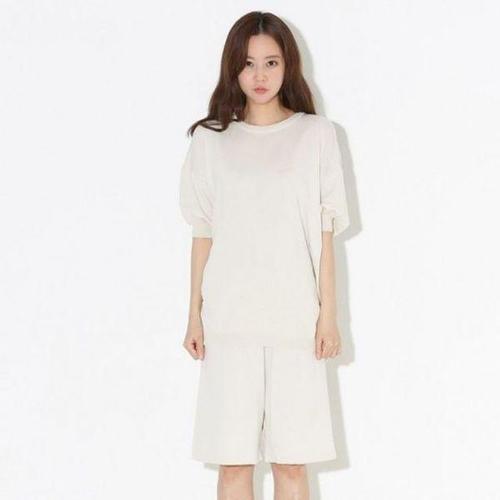 [에이치플러스몰]여성 반팔 벌룬 시보리 니트 루즈핏 반바지 세트
