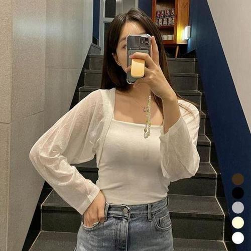 [신상오픈런]여성 시스루 세미크롭 긴팔 가디건 무지컬러 여리핏