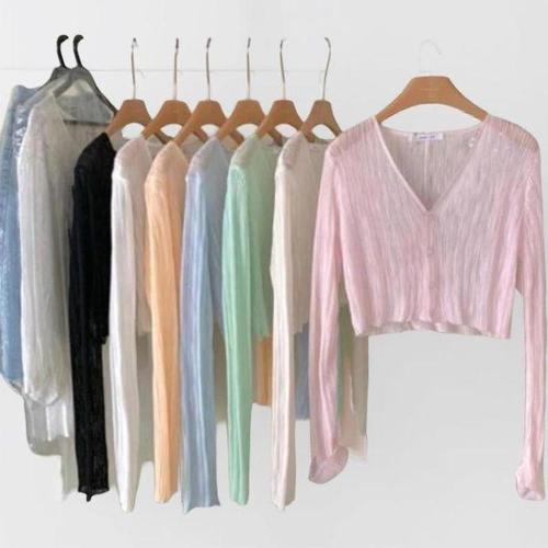 [신상오픈런]여성 시스루 얇은 크롭 라운드넥 스판 가을 니트 가디건