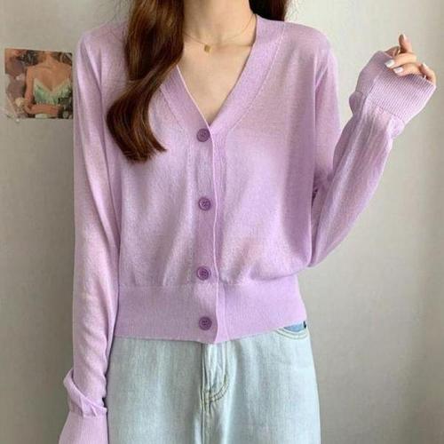 야오야오 주스 브이넥 얇은 니트 크롭 가디건