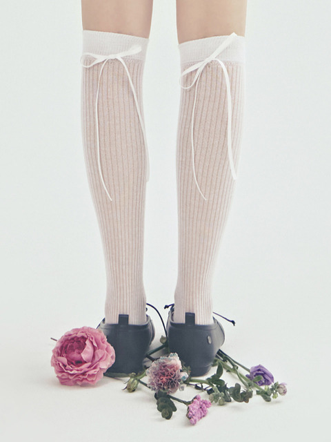 [비아리츠] 그레이스 백 리본 시스루 니삭스 2color