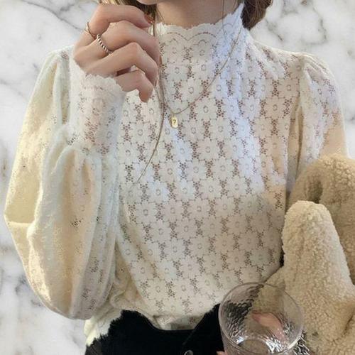 [신상오픈런]여성용 사랑스러운 시스루 레이스 일상 블라우스