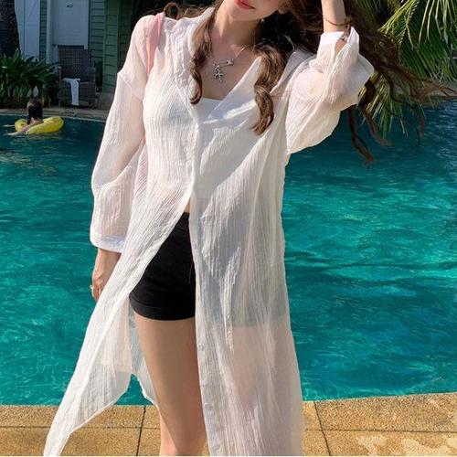 로브가디건 커버업 휴양 시스루 비키니 롱 (3uFQJ)